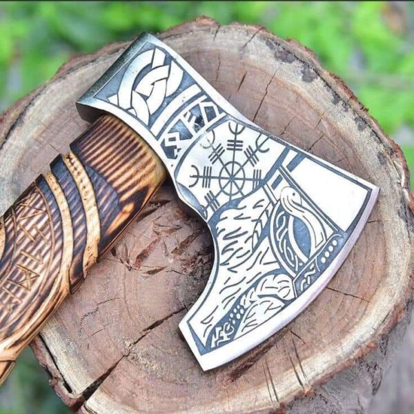 Introducing the “Handmade Viking Axe” – a powerful and striking weapon that blends ancient tradition with modern craftsmanship. The high carbon steel head is meticulously forged for exceptional sharpness, strength, and durability, allowing for precise, forceful strikes in any battle or task. Built to honor Viking heritage, this axe is designed to withstand the rigors of battle and nature alike.