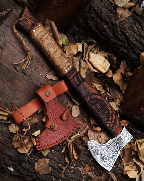 The Handmade Viking Axe – Crafted for Power, Tradition, and Timeless Elegance is a stunning blend of historical craftsmanship and modern functionality. The handle is made from premium ash wood, known for its strength and lightness, providing a balanced and comfortable grip. Expertly hand-engraved designs on the handle add a personal touch, showcasing intricate craftsmanship and connecting the axe to Viking traditions with every detail.
