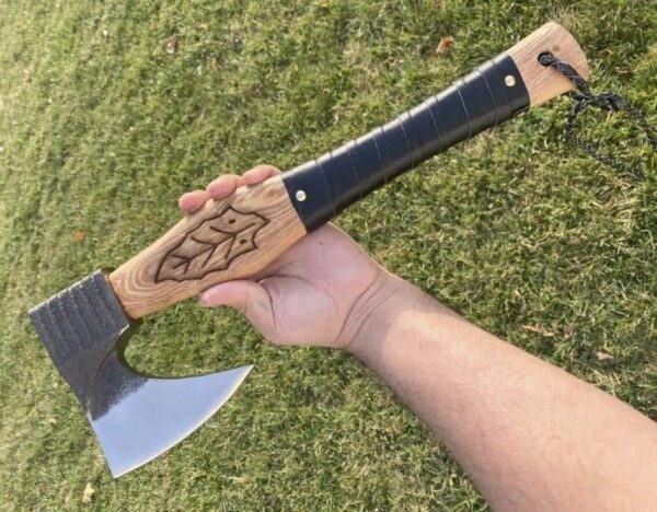 The handle is made from premium ash wood, renowned for its durability, shock resistance, and natural beauty. The ash wood provides a comfortable, firm grip, reducing fatigue during extended use and offering exceptional control. Each handle is carefully shaped to reflect traditional Viking designs, ensuring both functionality and historical accuracy.